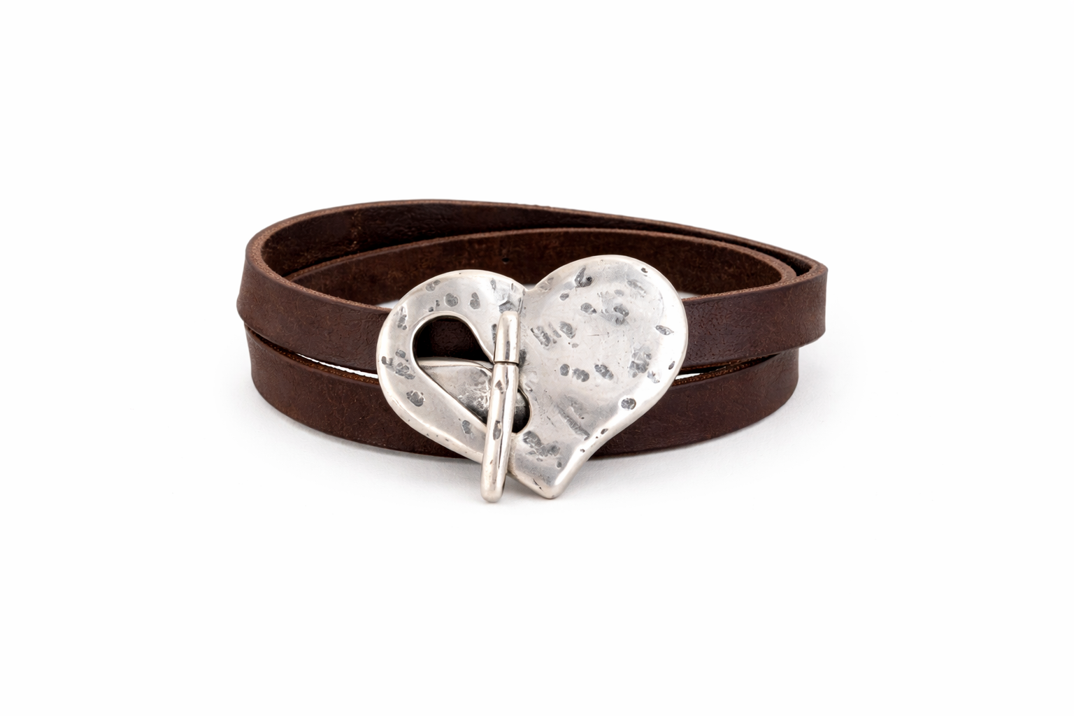 Hecha a mano con cuero natural y una delicada hoja de zamak plateado, simboliza crecimiento, equilibrio y fuerza interior.